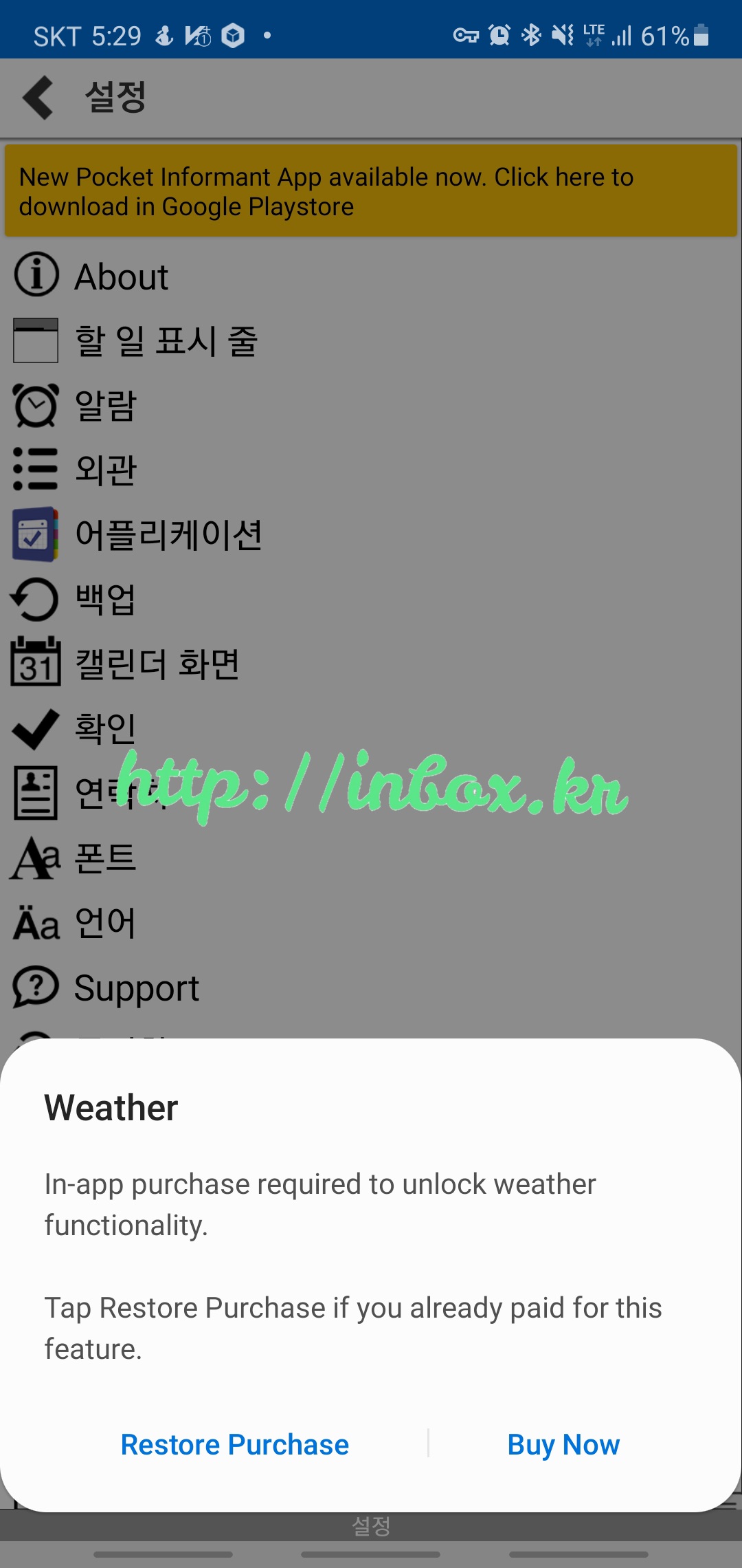 예전부터, 10년 정도 전부터 캘린더 및 할 일 관리를 위해 Pocket Informant라는 앱을 써 왔다. GTD 라느니 할일 관리하는 명제를 따라 꽤나 비싼 앱을 아이폰에서 샀었고, 안드로이드로 이사와서도 계속 사용해왔다.
