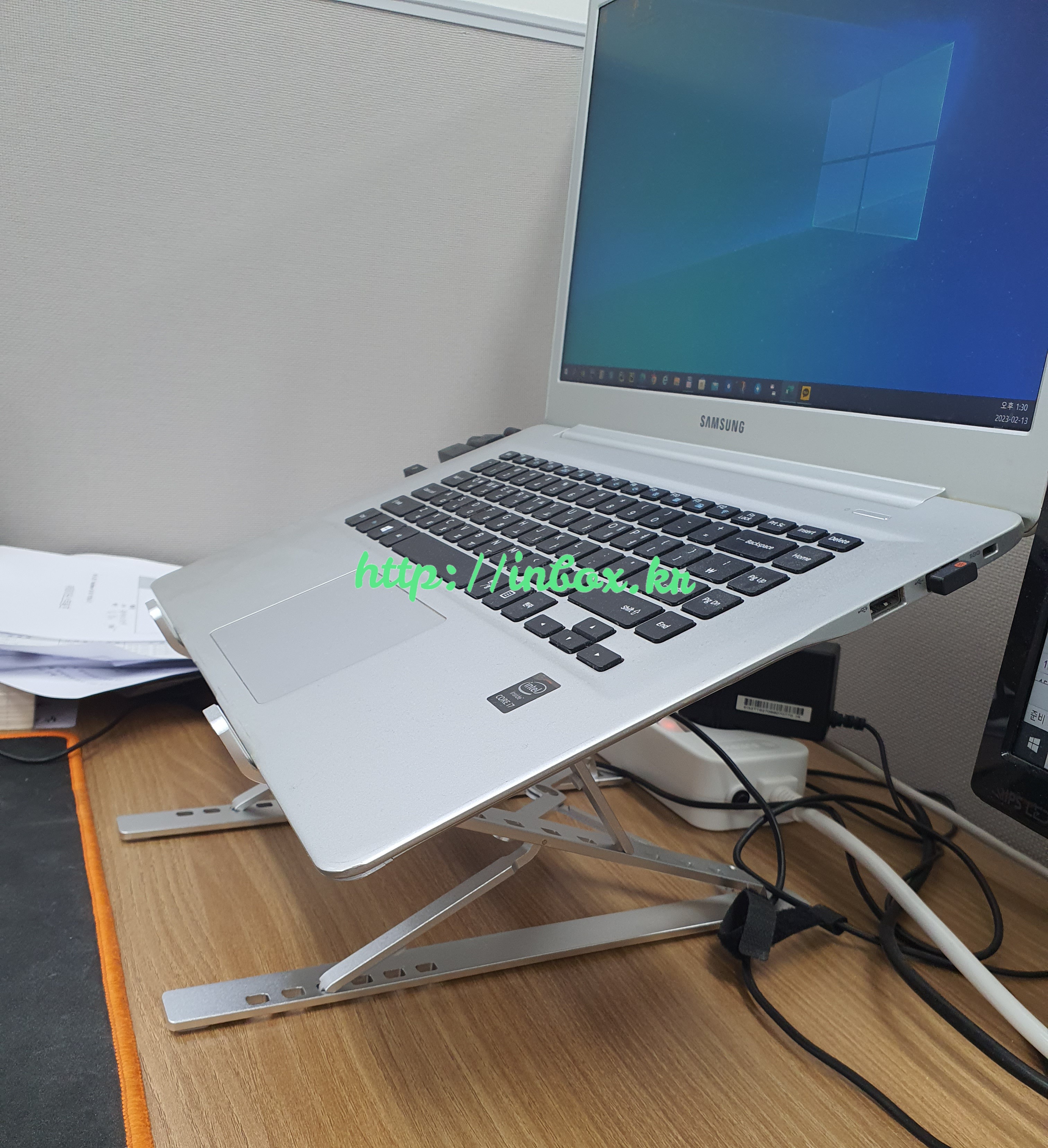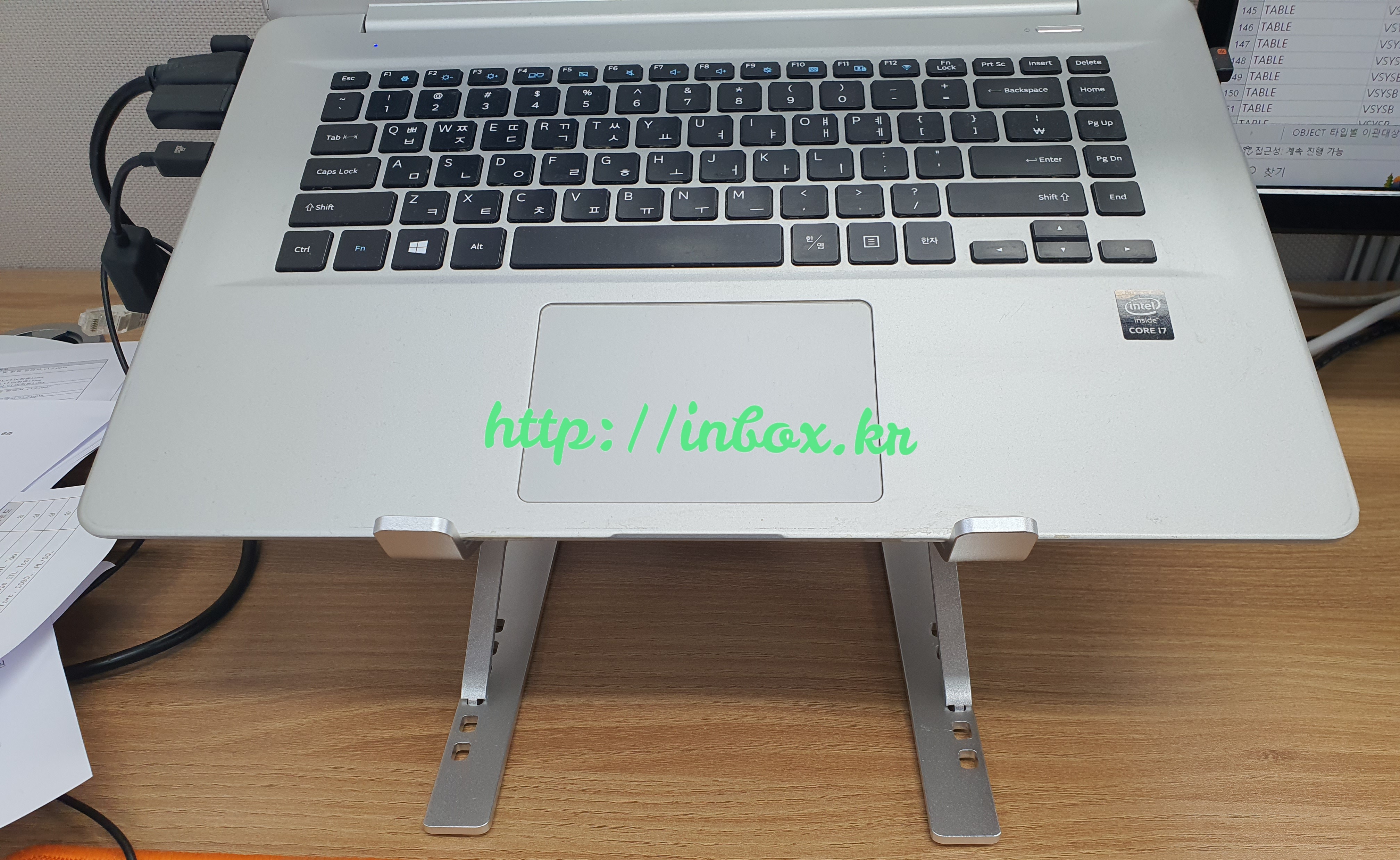더블레이어 노트북스탠드의 모양새가 잘 보이지 않아 측면 모습을 본다.