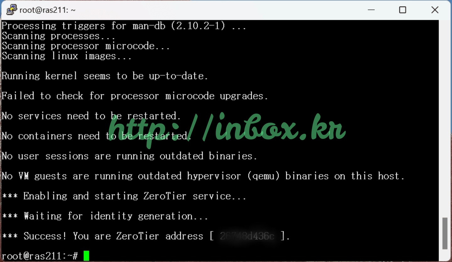 root@ras211:~# curl -s https://install.zerotier.com | sudo bash그때서야 신규 Zerotier ADDRESS를 부여받는다.