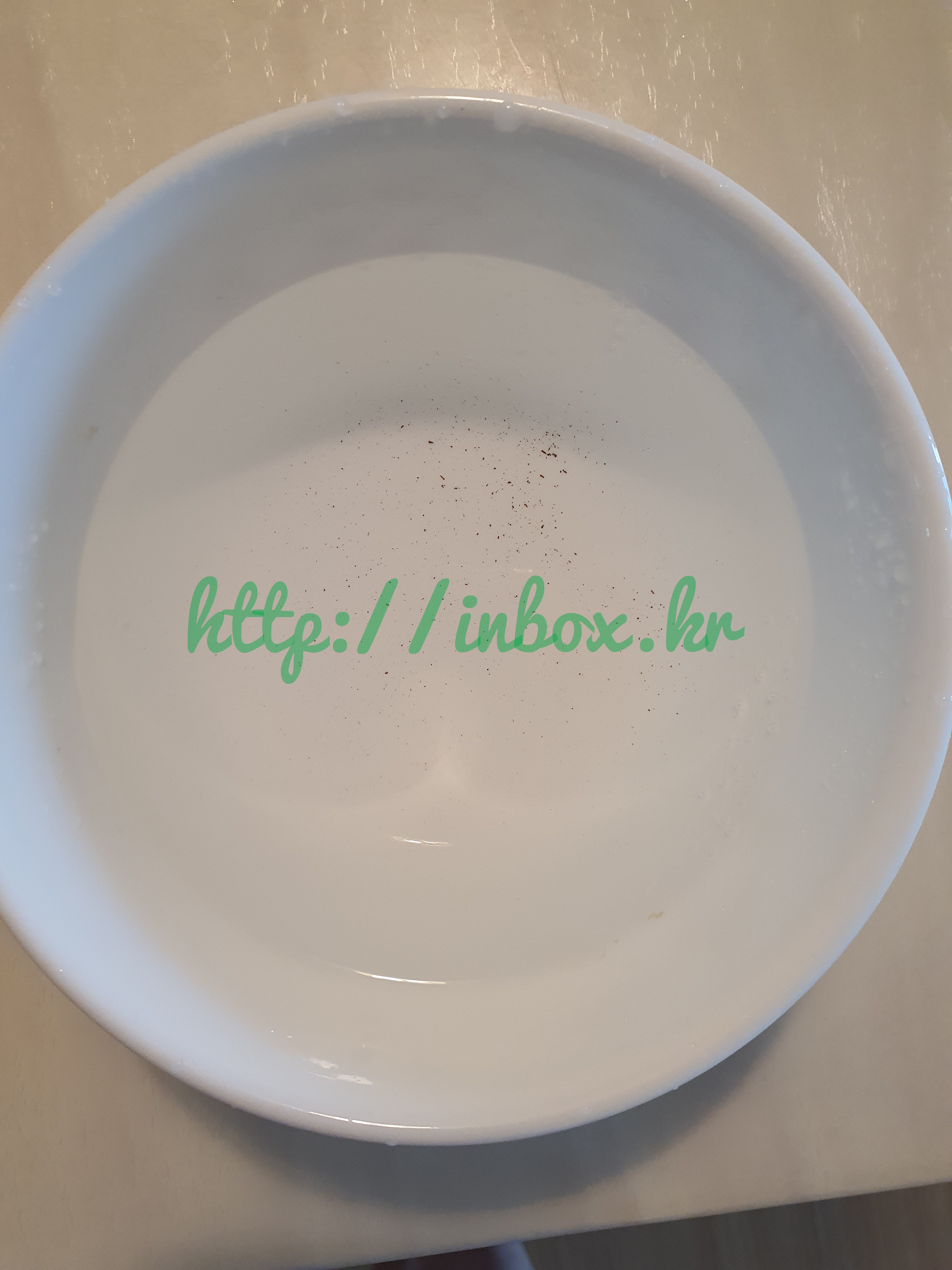 디스케일링 끝나고 물받는 대접을 보니 그동안 꾸준히 데일리 린싱을 했어도 디스케일링을 하니 또 커피가루가 묻어나온다.