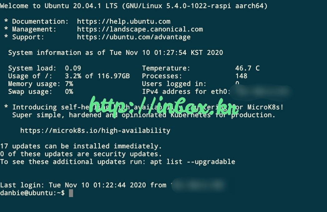 하루 정도 계속 라즈베리파이를 켜보고 다시 로그인하여 온도를 확인해봤다.