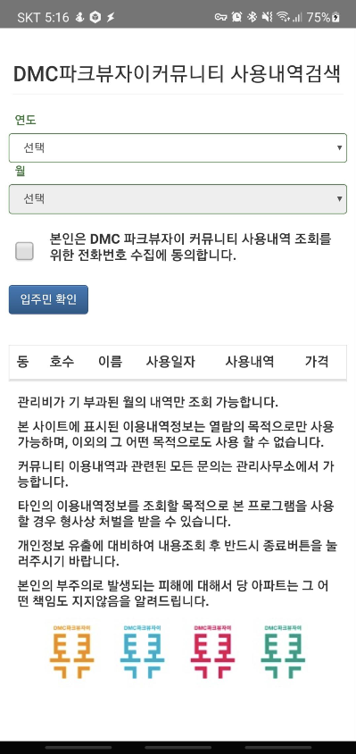 연, 월을 입력하면 사용 내역이 보인다. 이렇게 간편한 UI라야 쓸만하지.