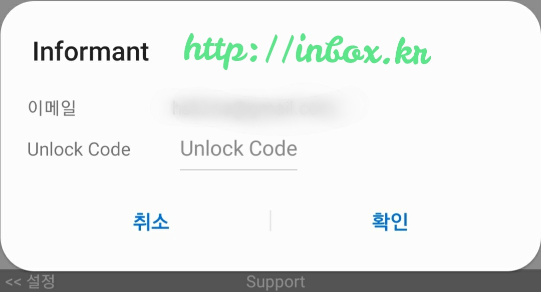 (이메일은 블러처리) 언락코드 넣는 곳이 있었다. 이넘들 말이 맞네. 지원은 해 주려나보다.