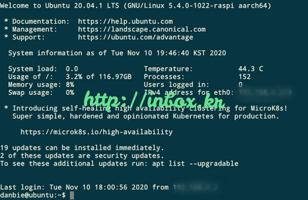 하루 정도 계속 라즈베리파이를 켜보고 다시 로그인하여 온도를 확인해봤다.