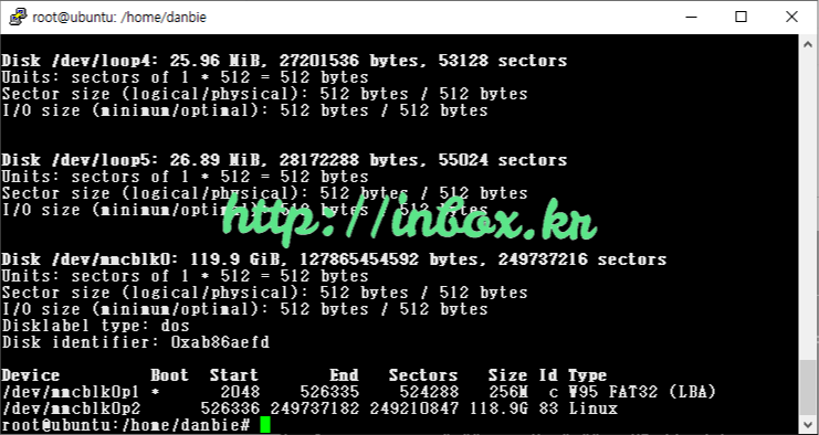 다시 잘 보니 SD가 쓰는 부분 중에 booting을 담당하는 첫 256M는 FAT32이고 나머지가 리눅스 파티션으로 잡혔다. 아마 라즈베리파이용 우분투 자체가 저리 구성되어 부팅 파티션을 제외하고 나머지는 저절로 잡혔나보다.