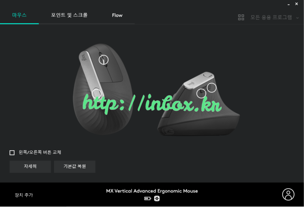 그리고 Logitiech Options 라는 프로그램을 깔면 마우스의 각종 세팅 및 버튼 설정을 조정할 수 있다.