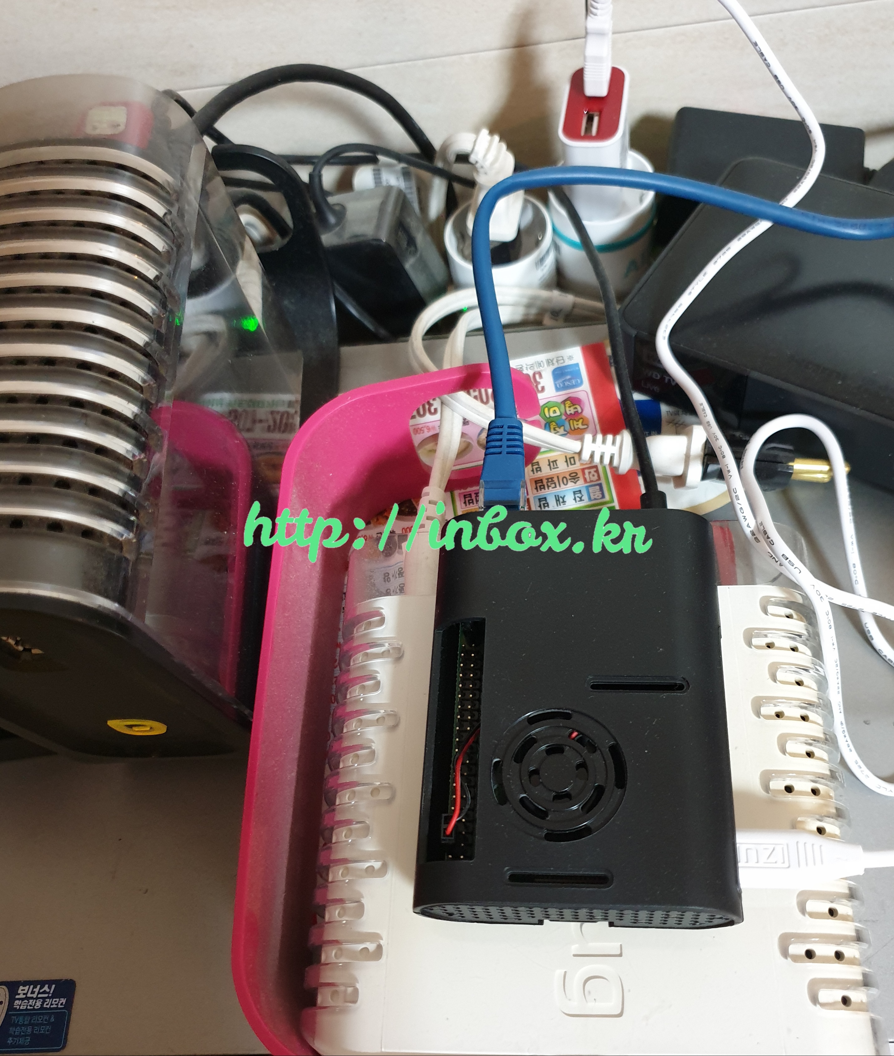 라즈베리파이를 설치하고, 기판 그대로 두기 뭐래서 케이스를 씌웠다.