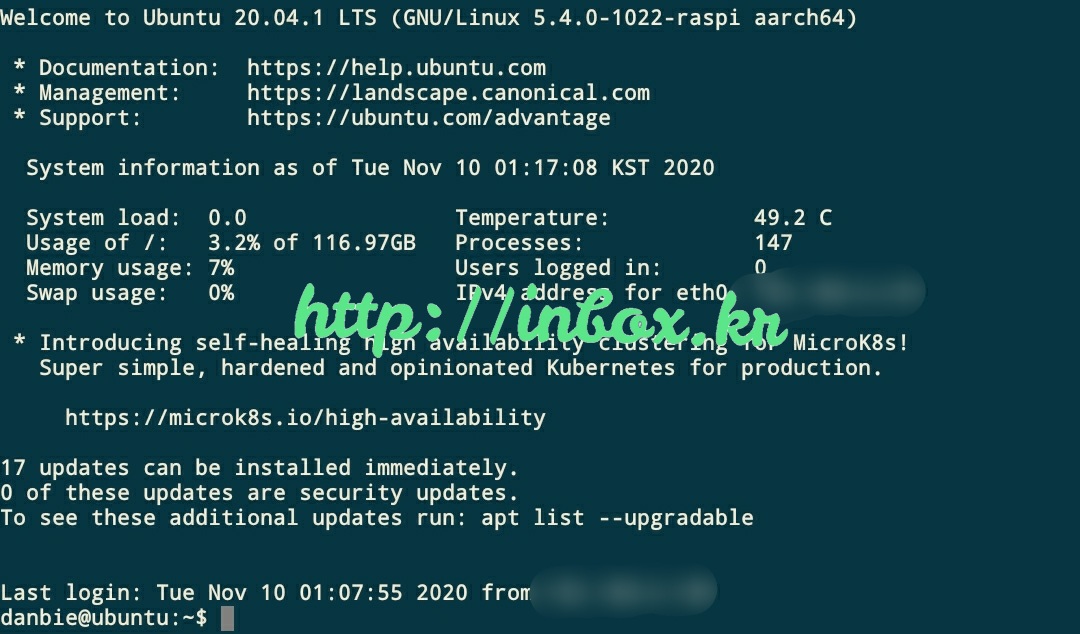 하루 정도 계속 라즈베리파이를 켜보고 다시 로그인하여 온도를 확인해봤다.