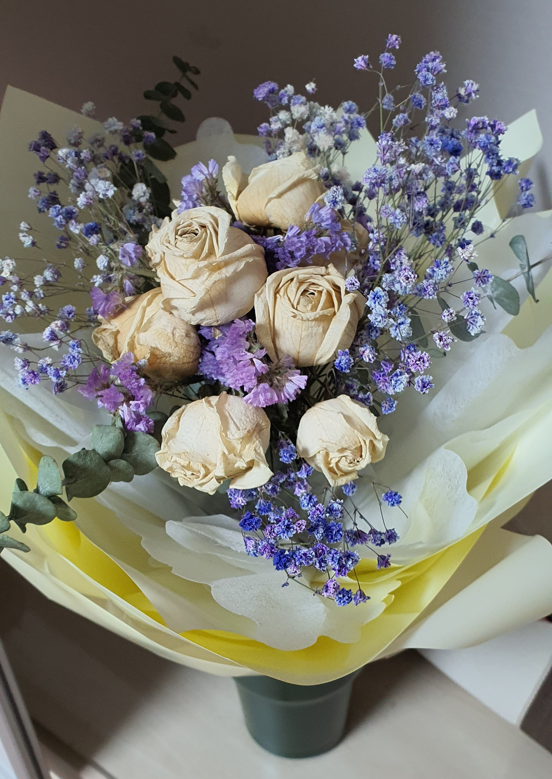 아이 고등학교 졸업식때 산 꽃다발을 남는 텀블러에 꽃아놔봤다.